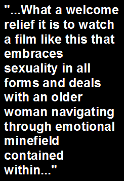 The big take away from GOOD LUCK TO YOU, LEO GRANDE is that it never feels exploitative in the slightest (even though with weaker actors and a less focused filmmaker it could have devolved into just that). Hollywood films seem to be demonstratively timid when it comes to on-screen sexuality in any form. What a welcome relief it is to watch a film like this that embraces sexuality in all forms and deals with an older woman navigating through emotional minefield contained within. Bedroom dramas are almost a dying breed, which makes insightful and smart ones like GOOD LUCK TO YOU, LEO GRANDE all the more special. |