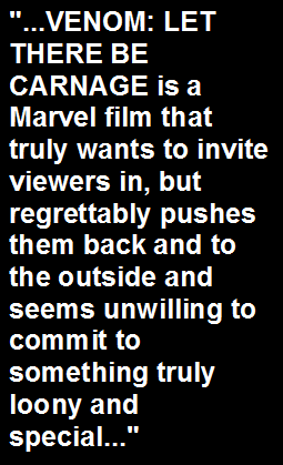 I found myself in an awfully considerate mood when I reviewed the first VENOM film from 2018, which was a somewhat committed, by mostly problematic live action treatment of one of Spider-Man's most famous villains from the pages of Marvel Comics. Though not