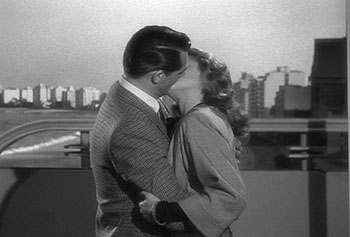 This film list of the best of 1940’s cinema would not be complete without a selection involving Alfred Hitchcock. The undisputed “master of suspense” created one of his most respected thrillers in NOTORIOUS, a cold, chilling, and compelling picture that gloriously intertwines romance and spy intrigue. It is a dark and layered film which stars Ingrid Bergman as an agonized American spy who becomes in a love triangle (shades of CASABLANCA) with a Nazi agent and another Federal man (played by Cary Grant). This is one of Hitch’s more twisted and compelling films – his ninth American outing – and it was also well known for Its great use of the “MacGuffin”, or device that propels the narrative. Beyond its characters, the film is also a deeply nuanced look at love, betrayal, trust, and moral and political duty. Although not respected by many critics of the time, NOTORIOUS is now regarded as one of Hitchcock’s most masterful creations that also headlines two leading actors at the height of their glamorous appeal. It also contains the most celebrated, passionate, and elongated kissing scenes in movie history. |