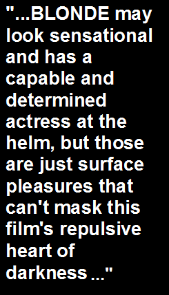 movies to see how they die." BLONDE is not a complete and all-encompassing reflection of a life; it's a long slow-burn affair that involves every atrocious episode that led to one woman ending up dead. How utterly cynical minded and depressing. |