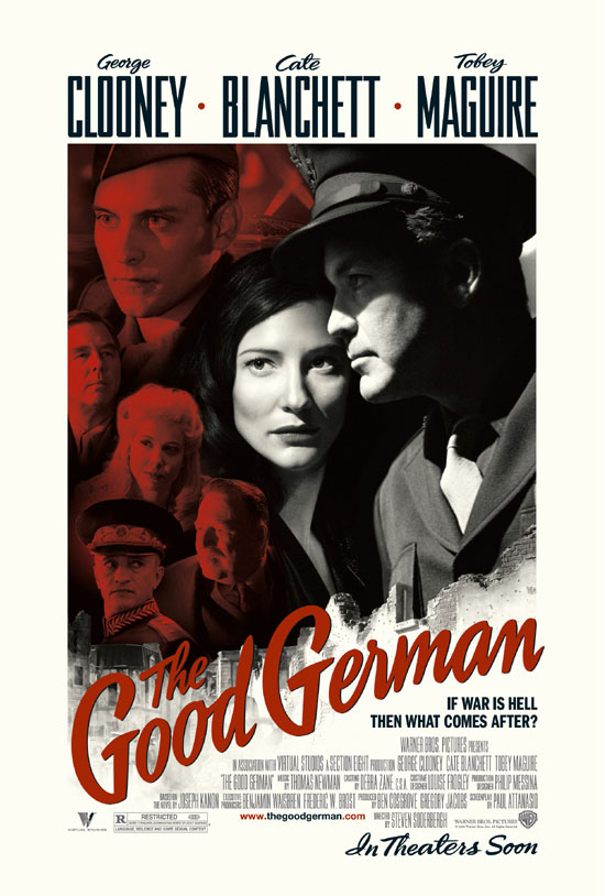 2006, R, 105 mins. Jake Geismer: George Clooney / Lena Brandt: Cate Blanchett / Tully: Tobey Maguire / Colonel Muller: Beau Bridges Directed by Steven Soderbergh / Written by Paul Attanasio / Based on the novel by Joseph Kanon |