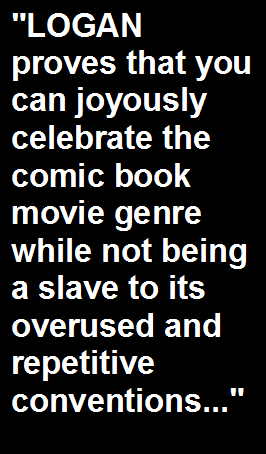 not being a slave to its overused and repetitive conventions. There's a great and quietly strong moment in LOGAN that speaks volumes to the film's approach. Charles and Laura are watching the western SHANE, which pitch perfectly echoes the type of film that LOGAN is trying to be. As the aging gunslinger tells the tearful lad in SHANE's climax, "There's no living with a killing. There's no going back from it. Right or wrong...it's a brand...a brand that sticks." Like the aging hero in George Stevens 1953 classic, Logan can't escape his violent past, as it has a way of creeping up on in when he least wants it to. That's precisely why LOGAN is probably one of the finest westerns featuring mutants ever conceived and executed.