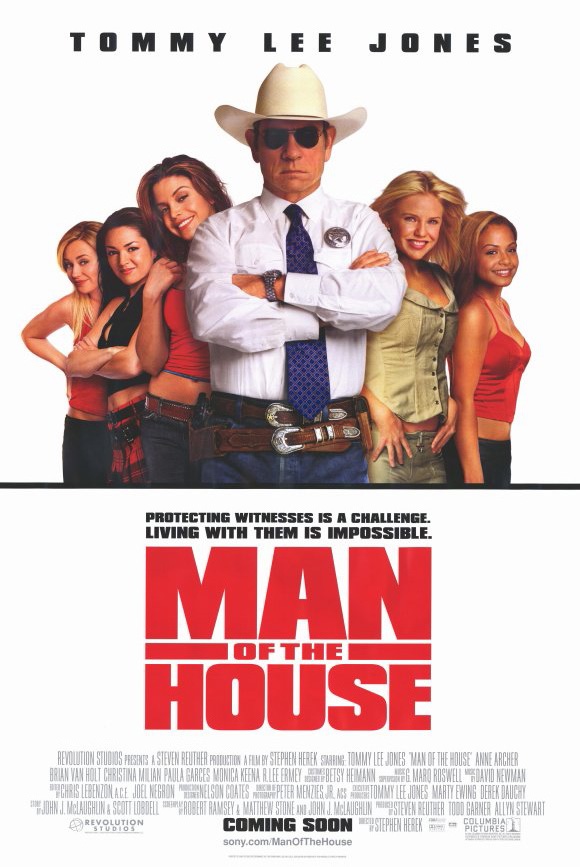 Jones is an established actor of significant range and charisma, and he has delivered some of the most memorable performances of the last twenty years of contemporary American cinema. He was sly and cunning in Oliver Stone’s JFK, playing assassination conspiratorial defendant Clay Shaw (he was nominated for an Oscar, and rightfully so, for his work there). He would later take home Oscar gold in 1993 for his thankless role as a US Marshal in THE FUGITIVE, one of the best pure thrillers of the 1990’s. He was brilliant as Ty Cobb in the underrated biopic COBB, and was even ingeniously wacky and flamboyantly over-the-top as warden Dwight McClusky in another Stone masterpiece, NATURAL BORN KILLERS. Hell, he even brought weight and verisimilitude way back in 1992 as a terrorist in the Steven Segal action picture UNDER SIEGE, and I might add that his role there would have been much less dimensional and fleshed out in a lesser actor’s hands. So…Tommy…Tommy…Tommy…what gives? Why are you in the consistently and obsessively unfunny, unoriginal, and unabashedly dreadful comic mess that is MAN OF THE HOUSE? Dammit…I want an answer! Okay, maybe I’ll have to use my modest deductive powers to formulate an answer for myself. Was it the chance of working with a gifted director? Probably not, especially if you consider that HOUSE was made by Stephen Herek, whose previous (and dubious) film credits include CRITTERS, THE MIGHTY DUCKS, and ROCK STAR. Wait a tick…maybe since he also directed BILL AND TED’S EXCELLENT ADVENTURE that would make him a suitable match for you, Mr. Jones. Probably not, but then again, he is from Texas, as are you, so maybe it was the chance of working with a fellow Texan…right? Okay, why else would you allow yourself to be involved in this raging stink bomb of a comedy? Was it the fact that the film had elements, at one time, of football? After all, you were a former Harvard offensive guard, so maybe you thought that this would be a funny football film…right? Probably not, since the film went through more script rewrites and writers then was even humanly necessary. Well, what about the fact that the film places you in familiar ground as a law official, but this time you get to be a Texas Ranger…that must have appealed to you…right? Okay, you are from the Lone Star State, but I hardly think that this reason was grounds enough for you to personally commit yourself to a film that is so negligible in terms of entertainment value that, while watching it, I felt kidnapped and tied down to my chair, fearing for my ability to escape from it. Now…here’s one question that I will never get a satisfying answer to – why, why, WHY did you, Mr. Jones, allow yourself to not only star in this lowest common denominator entertainment, but to co-executive produce it as well? That is probably the most shameful part of your participation here. You not only thought that this venture was worth starring in, but you even thought that it was so in need of being made that you actually lent out your name and assistance for a producing credit. Gee, you are probably wondering now if you could have used “Alan Smithee” for both your starring and producing credits because the thought of you wanting your name associated with this film staggers me. Oh wait…this film did not get a critic screening, which is the industry kiss of death in terms of a film’s relative worth, also ensuring that more people don’t see it. I’m sorry to have to say this Tommy...but for shame! MAN OF THE HOUSE is like one of those tired and appallingly insipid concept films whose premise feels cobbled together by a few producers who have had too much beer during one night out. The concept of the film maybe felt like an idea that was funny in itself – the ultra stoic Tommy Lee Jones playing the atypical Tommy Lee Jones authority figure that must protect a squad of ditzy cheerleaders after they have all witnessed a murder. The premise is not funny. Period. Also, the film’s tone is so ass-backwards that I felt like trying to feed the screen a dyslexic pill…if there was such a thing. It tries to be an action/romantic comedy that is neither exciting and fever pitched, nor is it compelling and poignant in the tender moments of the film. The film’s plot is so pedestrian and the romantic angle so unhappily manufactured that you kind of stare up at the proceedings with such a high level of mocking ridicule. However, the most dangerous and vile offence this film commits is that it takes one of the finest actors of his generation and essentially castrates him of all pride and dignity. If you doubt me, then consider – this is probably the first film that I have seen that reduces a former Oscar winning actor to play a part where he has to stick his whole arm up a cow’s anus and then expects us to laugh at it uproariously. Tommy, you are above this cinematic sludge...this is Paulie Shore territory and you know it. Jones plays Roland Sharp, the same type of hard-hitting, frank, tough talking, no-nonsense and Vulcanized, unemotional Texas Ranger that he essentially played much better in THE FUGITIVE. The plot is thin, to say the least, and plays like a warped and perverted version of WITNESS for the intellectually challenged. You see, Sharp is given the rather difficult challenge of watching over…or just babysitting…five college cheerleaders who all witness a key murder at the beginning of the film. It’s kind of funny, but Sharp sees this as a bit of a personal curse placed upon him. Yet, in hindsight, all of the cheerleaders are such perfect 10’s that you would question – for cryin’ out loud – why any normal male would complain about having to babysit five readily hot women, who all seem to parade around in next to nothing. This mission is sort of like a glorious MAXIM Magazine inspired fantasy, but to the man whose all business like Sharp, he feels that it as a burden. Uh-huh…whatever. 