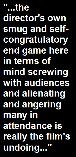 touch many nerves. It's at this point when MOTHER! echoes Roman Polanski's ROSEMARY'S BABY, even though the former achieves a level of unforgettable grotesqueness and shockingly graphic carnage that will make Polanski's film feel positively tame by comparison. MOTHER! is risky in the places it goes to, but even I would have to concede that those places are so uncompromisingly disturbing and appalling that you have to begin questioning Aronofsky's lack of tactful restraint. There's a difference between polarizing your audience and engaging them in primal shock value to the point of sending them fleeing for the exits. For all of the allegorical ambiguities that built up to MOTHER's finale, it's all but sabotaged by its filmmaker's incessant yearning to push buttons and revel in scandalous moments of tasteless excess. And that's where
