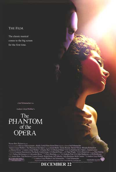 2004, PG-13, 145 mins. Gerard Butler, Emmy Rossum Patrick Wilson, Minnie Driver, Miranda Richardson |