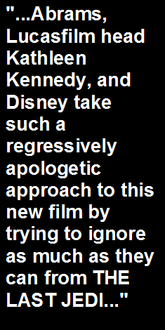 to accomplish with THE LAST JEDI, which makes Abrams' unwavering attempts