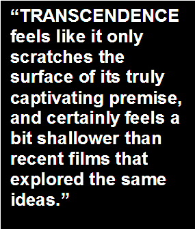 as enthralling as the film is on paper, TRANSCENDENCE never fully finds a