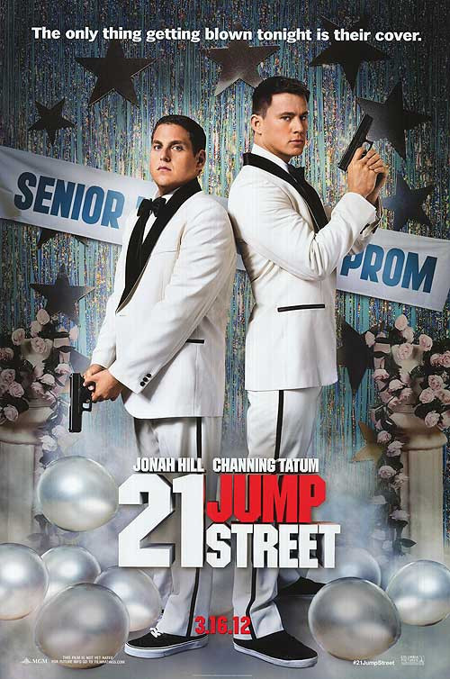 come in contact with can’t seem to believe that they're students either. The performances are also spot-on: I especially liked Ice Cube methodically playing up to every angry black dude police captain role we’ve seen so many times before (in reference to Franco’s drug dealer, he states, “This kid is white, so people actually give a shit!”). Jonah Hill – also serving as co-writer and co-producer here – has his reliably strong improvisational wits intact, but the real surprise is the typically mannequin-esque Tatum, an actor that typically has a range and thespian skill that traverses between middling to seriously lacking (he is sometimes so stoic and wooden in dramas that you have to remind yourself that he’s trying to be serious). Yet, in 21 JUMP STREET he’s so invigoratingly self-deprecating and just brazenly lets loose with a full-throttled, inhibitions-and-vanity-be-damned performance of frequent gut-busting joviality. Playing dumb and making it legitimately funny as well as endearing does take talent. 21 JUMP STREET may not win over die-hard aficionados of the old TV series, but as a breathlessly funny satire of teen high school angst and 80’s action film chic, it’s seriously enjoyable. It may perhaps go on far too long (it is 109 minutes, which is about ten minutes or so too long, even though our patience is rewarded with a surprise cameo by one the TV show’s stars during its fever pitched action climax, which – without spoiling anything – shows how the actor is a really, really good sport). Furthermore, the film contains some decidedly hit-or-miss gags and pratfalls, but its sheer comic energy and go-for-broke determination to make us laugh makes 21 JUMP STREET the rowdiest, most self-aware, and most consistently droll bromantic cop comedy since THE OTHER GUYS. Hill and Tatum may be, at face value, a horribly incongruent acting pair, but their oddball chemistry wins us over big time. |