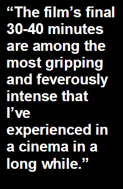 on-screen pairings that I’ve seen lately. Obligatory criticisms of historical accuracy have dogged the film just days after its release. Some claim that facts have been carefully included and discarded, whereas others have, again, taken exception with the film’s painting of Phillips as a brave champion against tremendous odds. I will leave you with this: Greengrass’ film is not attempting to be ostensibly a work of fact. This is a dramatic recreation of history where liberties, no doubt, were taken for the purposes of crafting a viscerally exciting and harrowingly immersive filmgoing experience. On those levels, CAPTAIN PHILLIPS is as stellar as anything that Greengrass has done previously. The film’s final 30-40 minutes are among the most gripping and feverously intense that I’ve experienced in a cinema in a long while. And the fact that we know the outcome of this story…well…that makes Greengrass’ achievement here all the more astounding. |