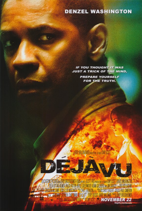 2006, R, 128 mins. Doug Carlin: Denzel Washington / Claire Kuchever: Paula Patton / Agent Pryzwarra: Val Kilmer / Carroll Oerstadt: James Caviezel / Denny: Adam Goldberg / Gunnars: Elden Henson / Jack McCready: Bruce Greenwood Directed by Tony Scott / Written by Terry Rossio and Bill Marsilii |