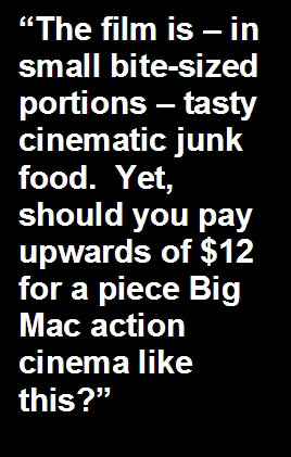 chair in shame. I’m not sure whether I really should recommend LONDON HAS FALLEN. If you loved the first entry in this series then you’ll certainly find sporadic enjoyment this sequel. Najafi does frame some of the individual action sequences with a real pulse pounding efficiency (a late scene involving Banning storming through a street and into the terrorist stronghold – done with what appears to be a long, unbroken take – is quite exhilarating to behold). Deep down, I understood the type of action film LONDON HAS FALLEN was trying to be, which means that criticizing it for its inherent B-grade action genre eccentricities is ultimately a fool’s errand. At 90 minutes, the film is also mercifully brief and never overstays its welcome. The film is – in small bite-sized portions – tasty cinematic junk food. Yet, should you pay upwards of $12 for a piece Big Mac action cinema like this? I’m just not altogether sure, especially after OLYMPUS HAS FALLEN did everything that it needed to do – and better – than this sequel. |
