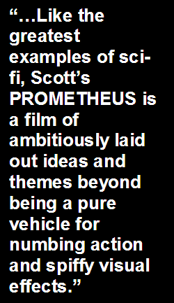 examples of sci-fi, Scott’s PROMETHEUS is a film of ambitiously laid out