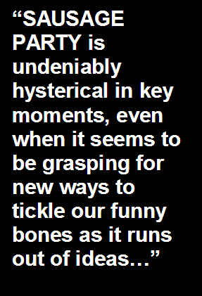 SAUSAGE PARTY occasionally struggles for new ideas and gags the