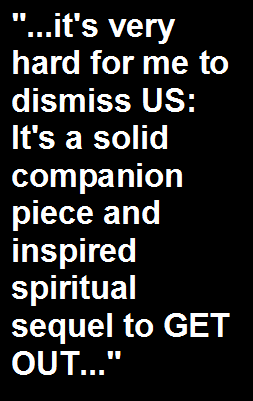 grow to learn how everything happened. And at the risk of going into mild spoilers, US culminates with a late breaking plot twist that, upon modest scrutiny, doesn't seem to logically hold up very well. That, and it felt like a tacked on and redundant cheat, if you ask me. Now, not all plot twists need to make pitch perfect sense, mind you, but the one Peele drums up here never feels completely earned or justified. Added to that is the notion that the director also seems to be adhering to - as he did to disappointing effect in the climax of GET OUT - the very overused and dry horror thriller troupes that he's obviously trying very hard to subvert and transcend (i.e. - characters making stupid decisions about leaving safe areas to explore dangerous ones, and often on their own). But, seriously, it's very hard for me to dismiss US: It's a solid companion piece and inspired spiritual sequel to GET OUT, and as an inventive, assured and well oiled exercise in genre filmmaking, Peele has most certainly defied any sophomore jinxes. Despite some creative hiccups on his part, Peele certainly has earned his early silver screen career reputation for being an alluring provocateur with each new film. To me, this guy's just getting warmed up.